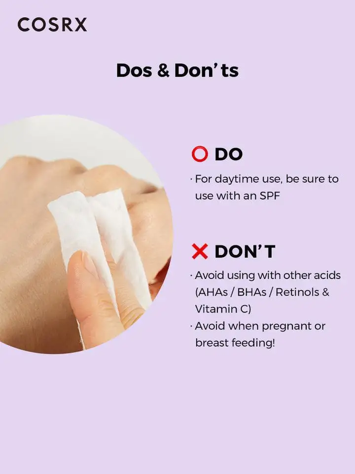 تجنبي الخلط: لا تستخدميه في نفس الروتين مع أحماض أخرى (مثل الريتينول أو فيتامين C).