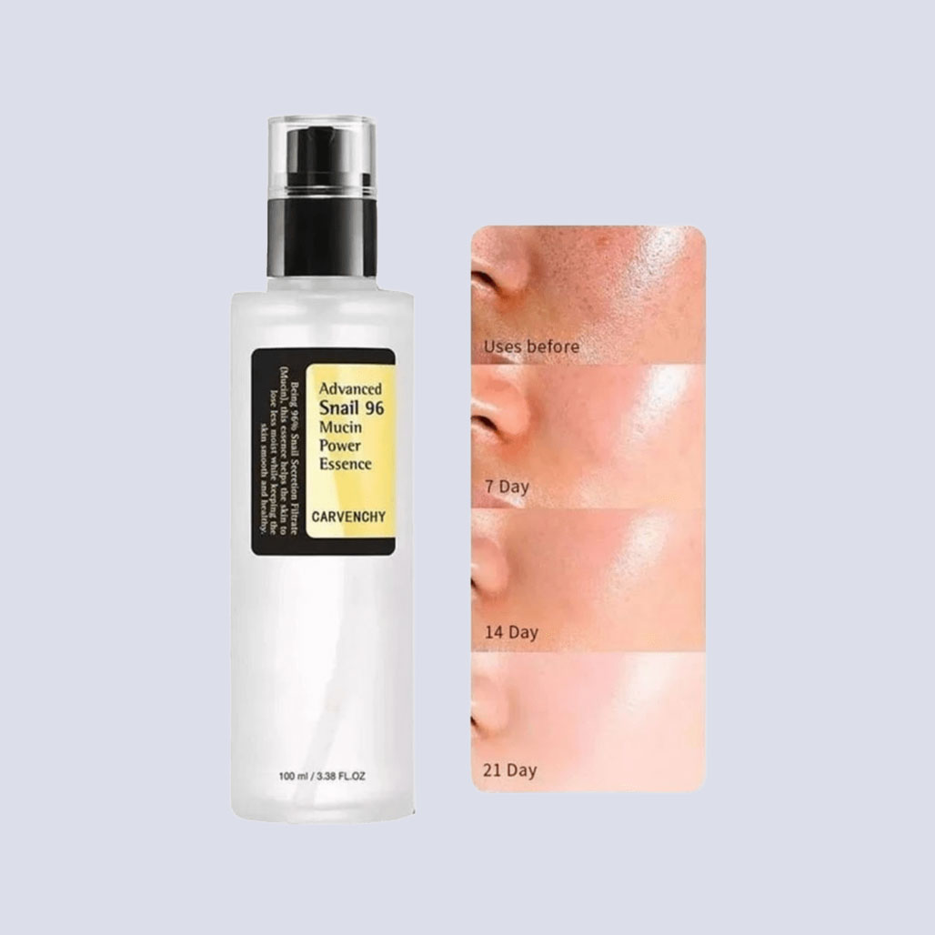 The complete solution for healthy, glowing skin. Are you dealing with dullness, acne marks, or dryness caused by air conditioning and outdoor weather? COSRX Advanced Snail 96 Mucin Power Essence is the solution everyone is looking for. It features a lightweight texture that penetrates the skin to help repair it from within, giving you a healthy, plump look that lasts all day.