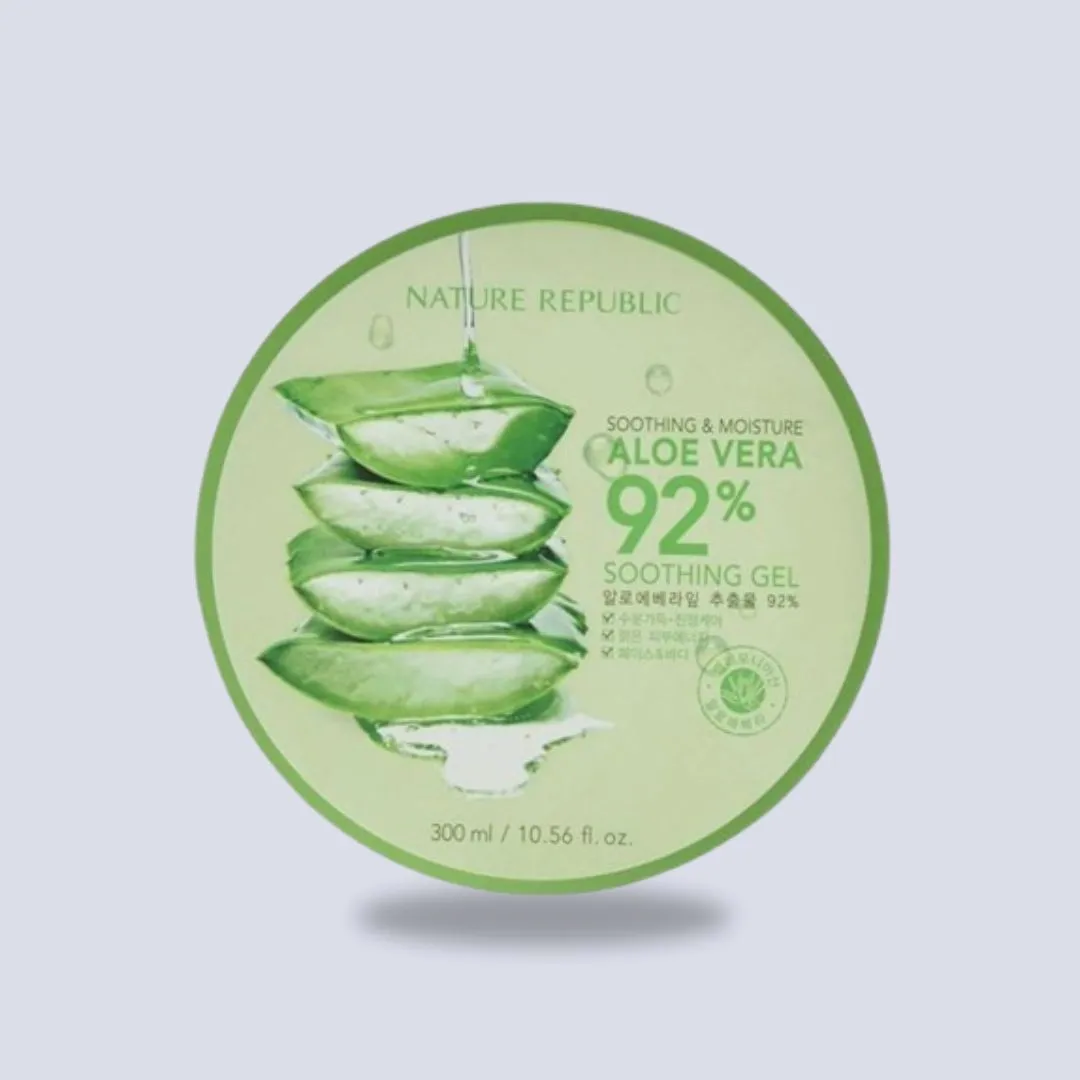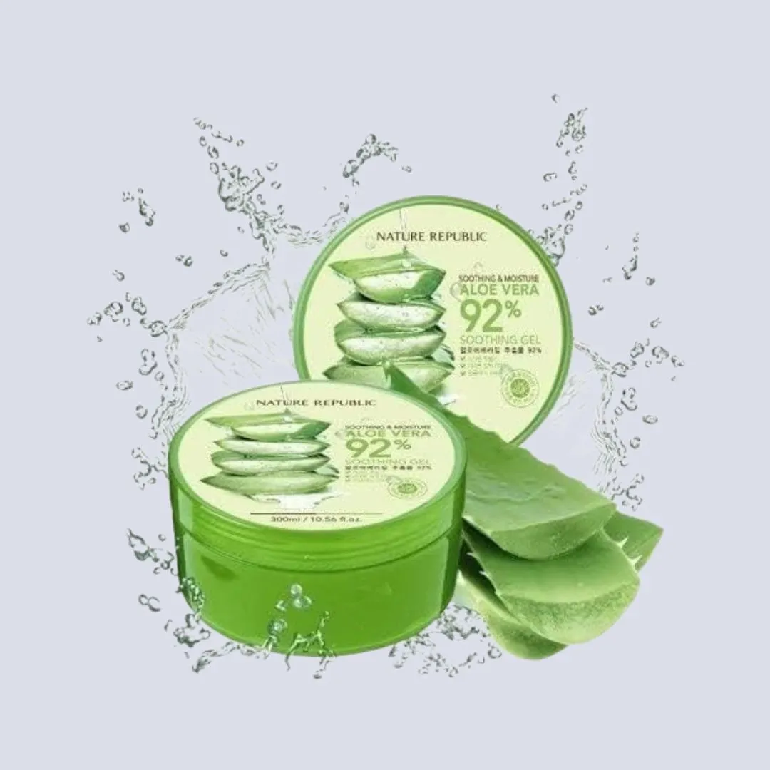 Nature Republic Moisturizing Gel with Aloe Vera Extract 300ml contains natural aloe vera extract as the key ingredient. Aloe vera provides gentle moisture, helps calm irritated skin, and supports skin elasticity. The gel formulation allows easy application without leaving a sticky or heavy feel, making it ideal for use on hair, nails, and skin.